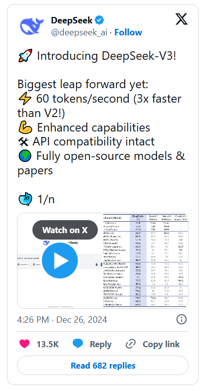 Trained on 14.8 trillion diverse tokens and incorporating advanced techniques like Multi-Token Prediction, DeepSeek v3 sets new standards in AI language modeling. The model supports a 128K context window and delivers performance comparable to leading closed-source models while maintaining efficient inference capabilities.